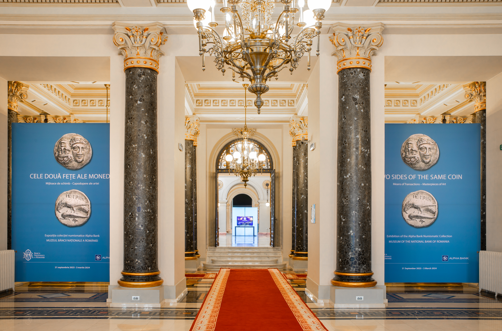 Η έκθεση «Two Sides of the Same Coin. Means of Transactions – Masterpieces of Art» παρουσιάζεται στη Ρουμανία. 100 ελληνικά νομίσματα της Νομισματικής Συλλογής της Alpha Bank εκτίθενται σε ένα από τα πιο εντυπωσιακά κτίρια του Βουκουρεστίου. Η έκθεση αναδεικνύει το νόμισμα ως μέσο συναλλαγής από τον 7ο αιώνα π.Χ. και ως αριστούργημα της αρχαίας ελληνικής τέχνης. Παράλληλα, πραγματοποιούνται εκπαιδευτικές δράσεις για παιδιά και για το ευρύ κοινό.