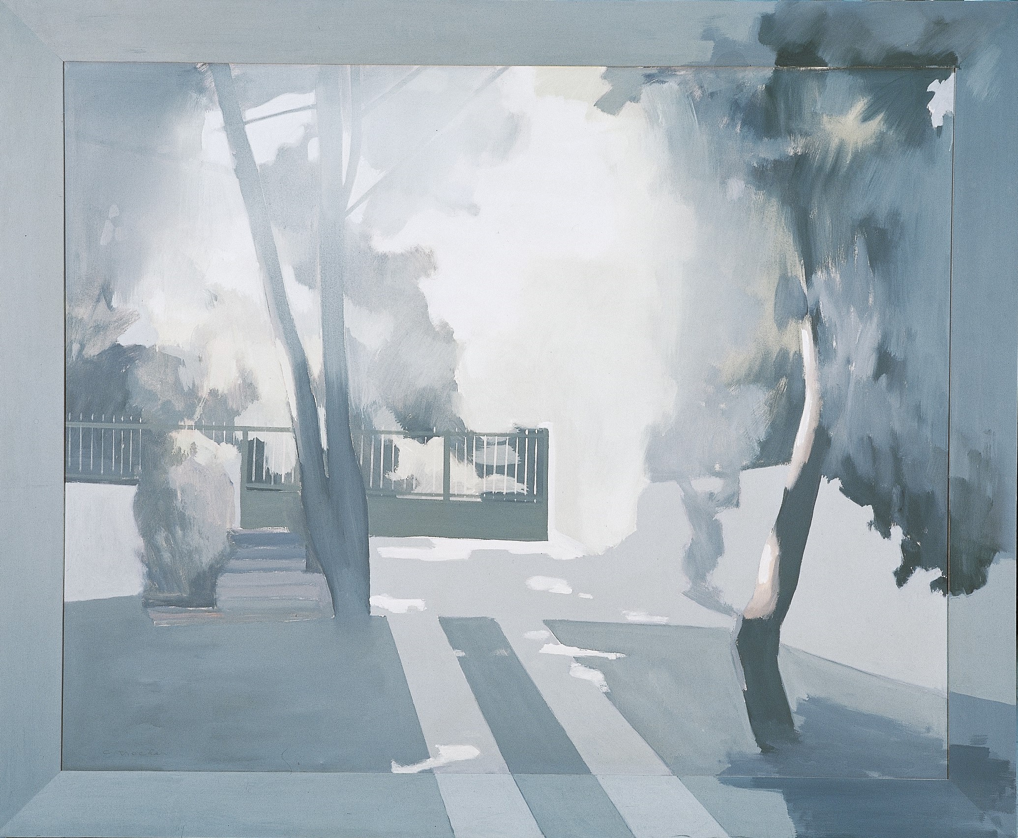 The composition develops on a vertical axis. It is marked by its clear and bright hues, as well as the filtered light that is uniformly diffused on the painting’s surface. Papaloukas has omitted the details. This way, he succeeds in giving greater emphasis to a feeling of evanescence and fleeting impressions.