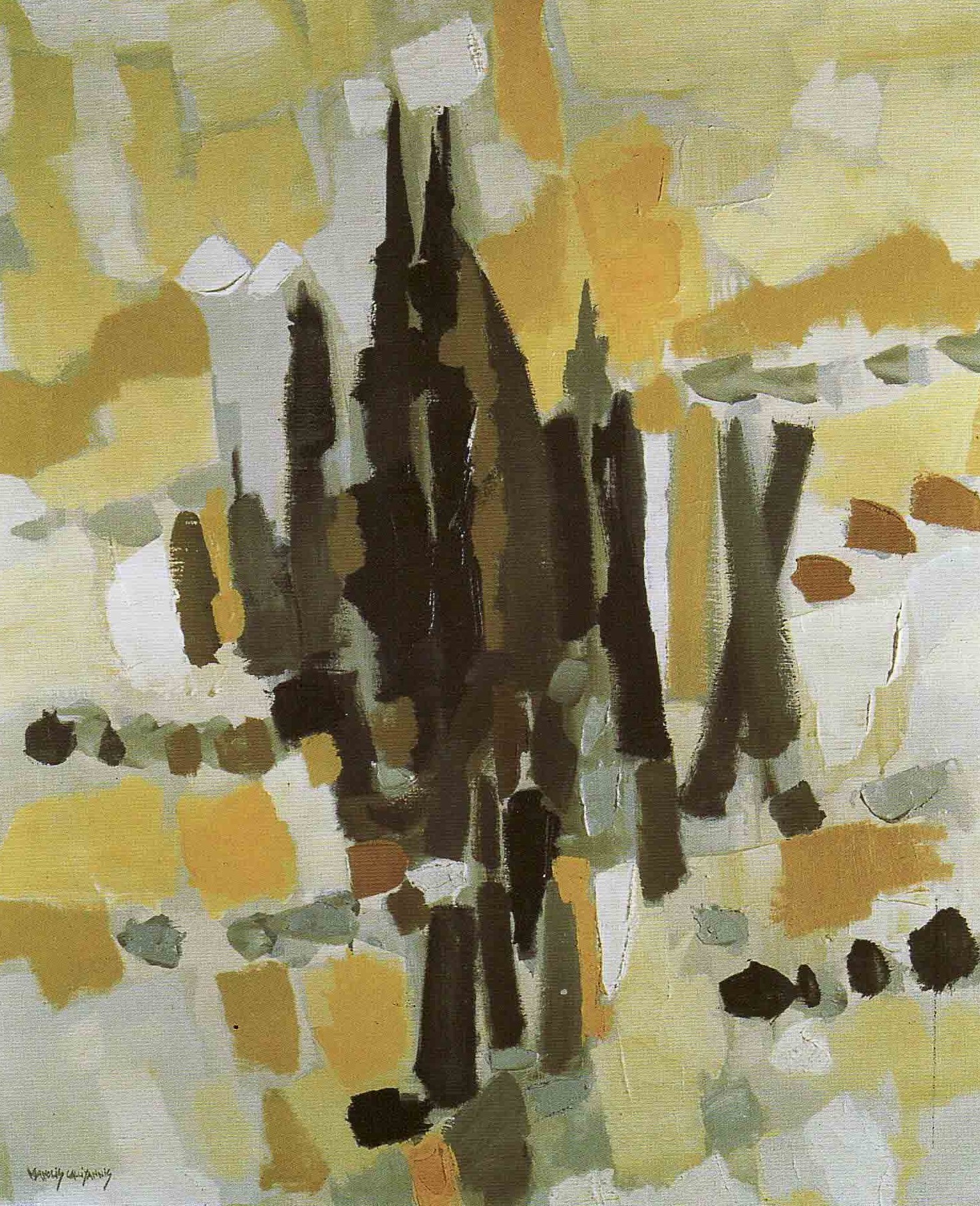 The artist visualised figures and elements of the past with intense spirituality. In this manner, he has created a composition with a metaphysical reach, and echoes of past worlds and eras.
