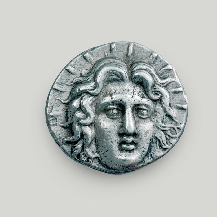 When coins started to circulate, the word ovelos (the previously used spit) changed to ovolos (“obol” in modern numismatics) and was used to denote the value once held by 1 spit, i.e. 1/6 of a drachma.